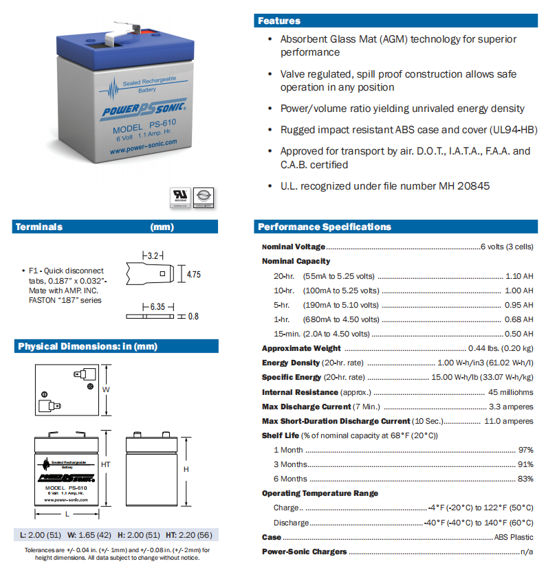 > Power-Sonic 鉛酸電池 PS-610原裝正品現(xiàn)貨庫存